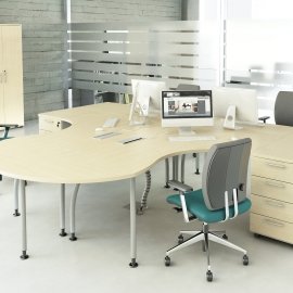 Gebogene Tischbeine in verschiedenen Farbtönen mit höhenverstellbarem Fuß eignen sich für alle, die lange am Schreibtisch sitzen und Beinfreiheit zu schätzen wissen. Die passenden Container, Beistelltische, Regale und Schränke für die Arztpraxis runden das Angebot an diesen schönen und praktischen Arztmöbeln ab. Richten Sie sich Ihre Praxis, Ihren Therapieraum, das Wartezimmer oder Sprechzimmer nach Ihren Wünschen ein - mit der Serie GAMMA kein Problem.